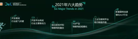 根据《2021全球AIoT开发者生态白皮书》的预测,明年AIoT行业有6大发展趋势:开发者将成AIoT行业起飞关键角色、AIoT开放平台将是行业主要推动力、前沿新技术将与物联网进一步融合、To B产业物联网将规模化、工业互联网将助力制造全面升级和新基建将加速催化AIoT行业发展。